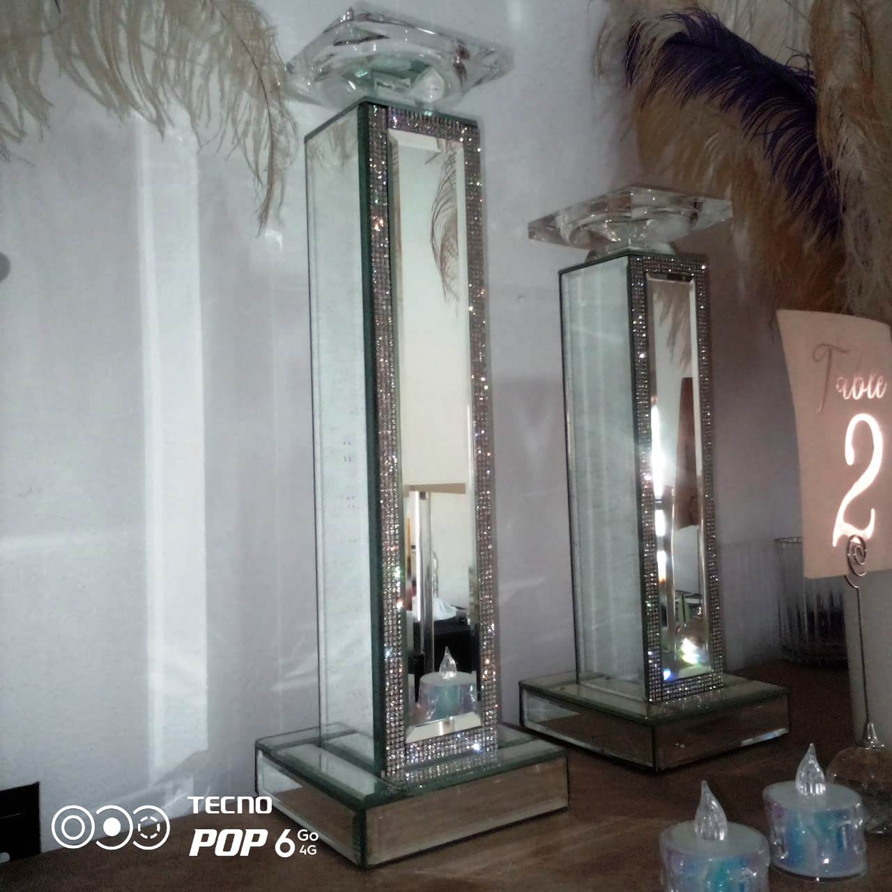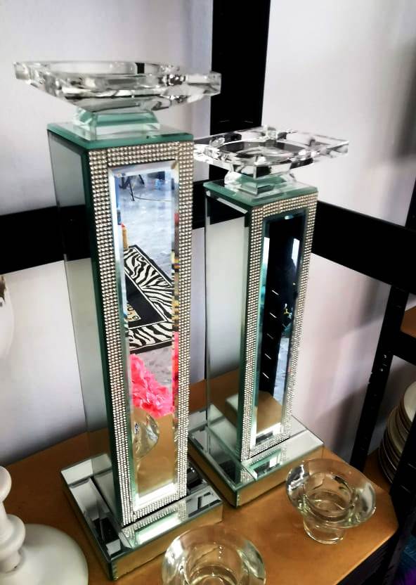 Centre de table porte-bougie, élégant et raffiné, idéal pour sublimer vos décorations d’événements. Location disponible.